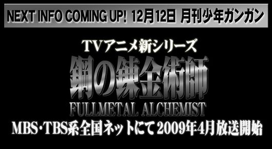 钢之炼金术师 TV动画新系列『钢之炼金术师 FULLMETAL ALCHEMIST』2009年4月放送开始!