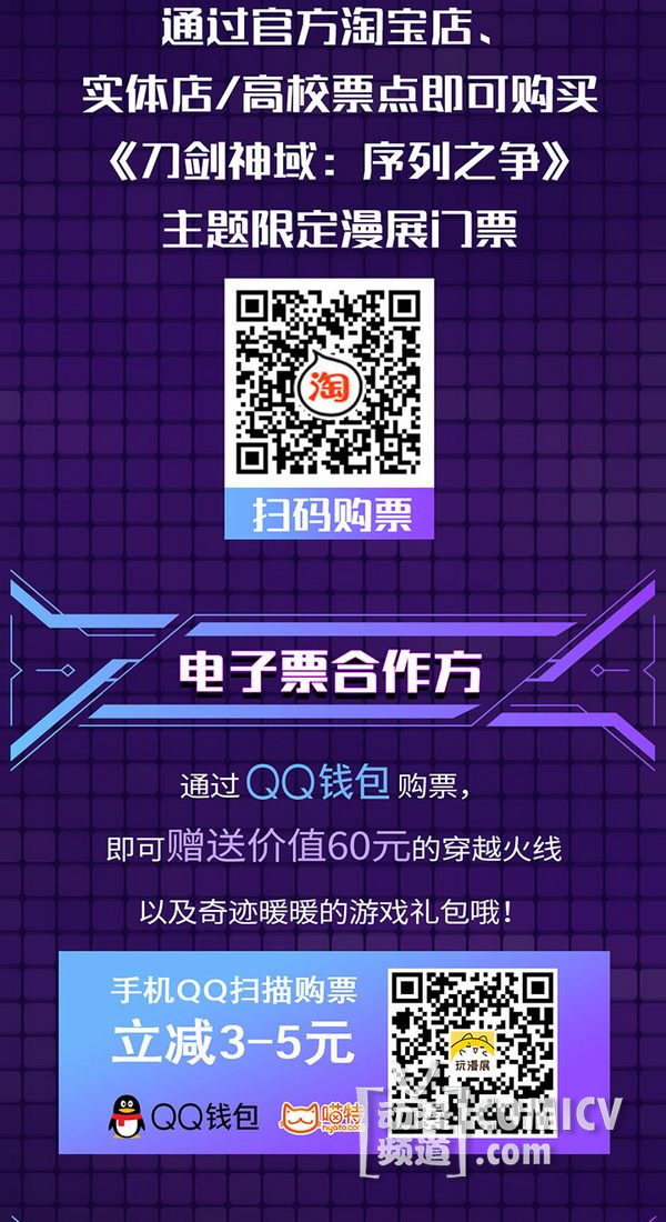 预售实体票为《刀剑神域:序列之争》主题限定款,可通过官方淘宝店铺、线下实体店/高校票点购买;