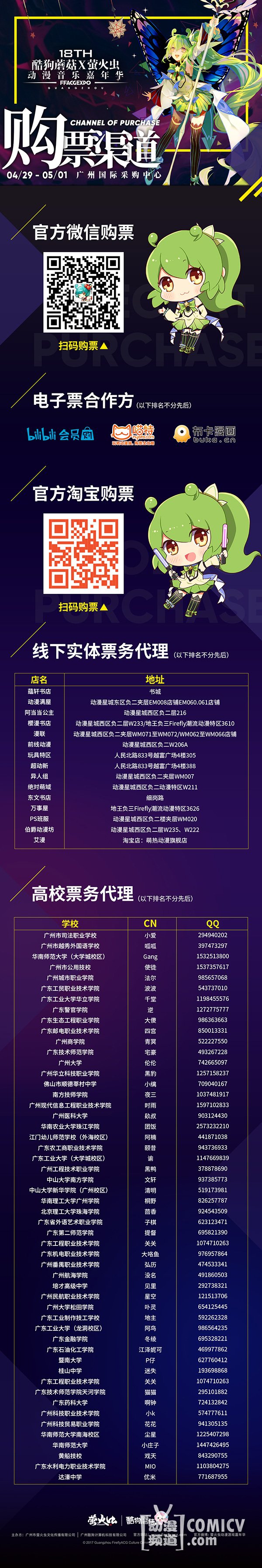 电子票:官方微信 / 哔哩哔哩会员购 / 喵特 / 布卡